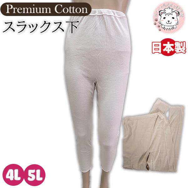 超長綿プレミアム スラックス下 綿100% 10分丈 日本製 4L/5L | レディース インナーボトム フライス 婦人 女性 下着 肌着 アンダーボトム タップパンツ