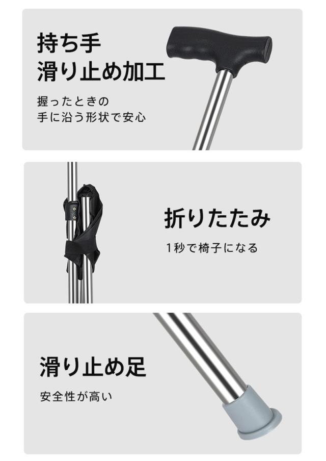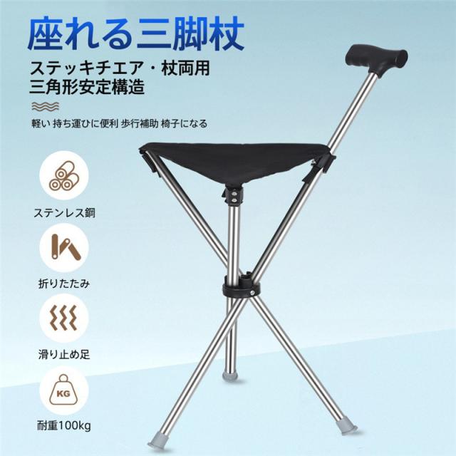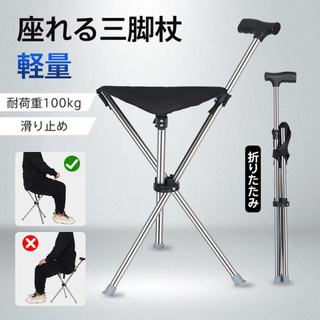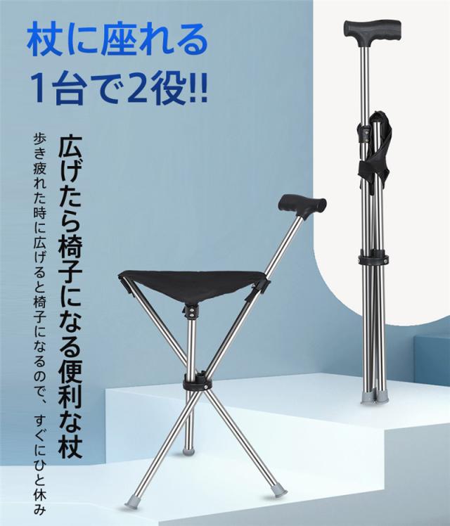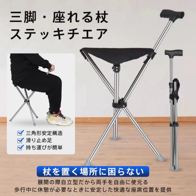 杖 介護 座れる杖 折りたたみ 三脚 軽量 イス 椅子 自立式 ステッキ 歩行補助 チェアー 滑り止め 休憩 女性 男性 年寄り