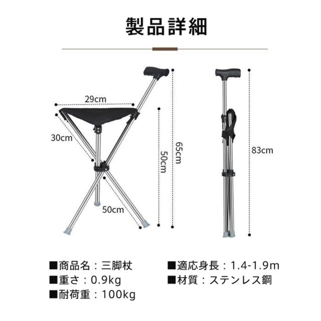 杖 椅子付き ステッキ ステッキチェア つえ 歩行補助杖 折り畳み 3本脚 座れるステッキ 歩行支援 女性用 男性用 休憩 散? コンパクト 携帯便利 旅行 行列 遠足 釣り アウトドア 介護トイレ補助 夜間散歩 父の日 母の日 敬老の日 誕生日 ギフト お年寄り 高齢者 スポーツ観戦 男女兼用 メンズ レディース 歩行補助 登山