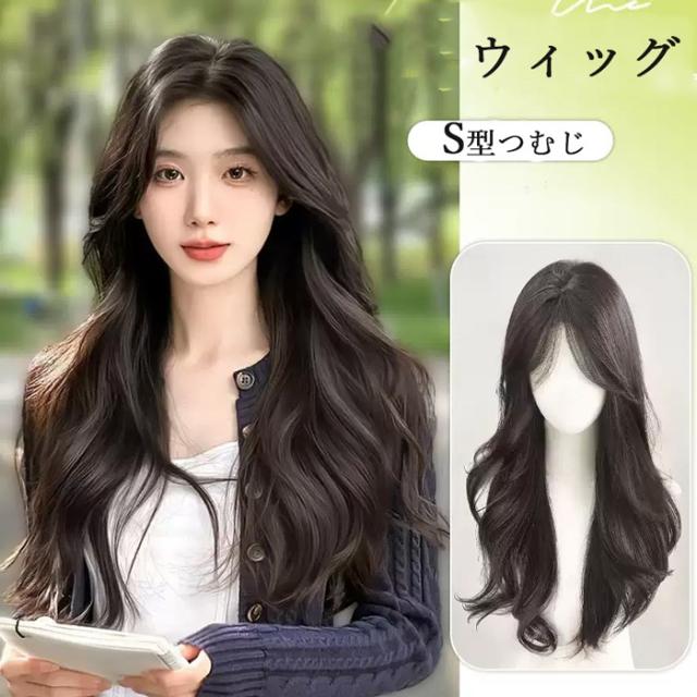 ウィッグ ロング 巻き髪 左右分け前髪 S型つむじ バレない 自然 小顔 耐熱 かつら 女性 女装 ロリータ コスプレ 普段使い ネット 付 ファション 黒髪 カール ウェーブ フルウィッグ wig