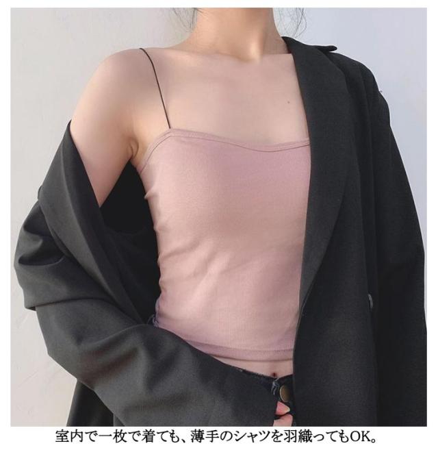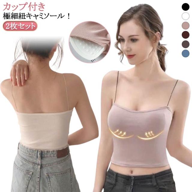 タンクトップ キャミソール 2枚入 細ストラップ キャミソール パッド入り 極細紐 インナー カップ付き ショート丈 キャミ キャミソール レイヤード 重ね着 下着 取り外し可能パッド 無地 シンプル 可愛い 着痩せ 伸縮性 ストレッチ トップス お洒落