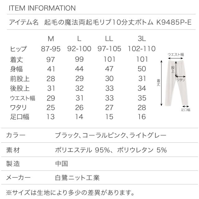 起毛の魔法 あったか 両起毛 10分丈 ボトム 暖かい レディース インナー シャツ ルームウェア 部屋着 にも 婦人 女性 秋冬 おしゃれ 24AW K9485P-E