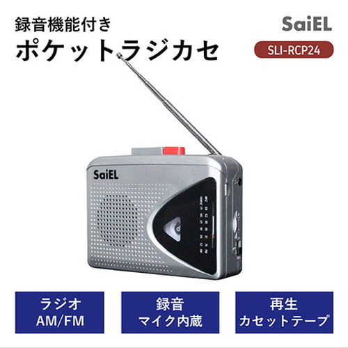 サイエルインターナショナル 録音機能付きポケットラジカセ カセット再生・録音マイク内蔵・AM/FMラジオ SLI-RCP24(代引不可)【送料無料】