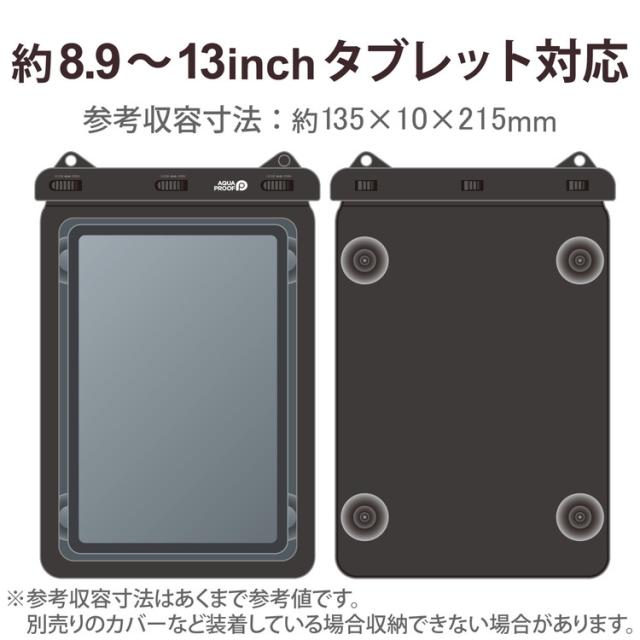 エレコム ELECOM タブレットケース 防水ケース 汎用 IPX8 吸盤付き iPad Android 等 8.9〜13インチの タブレット 対応 ブラック TB-WPSB13BK 代引不可