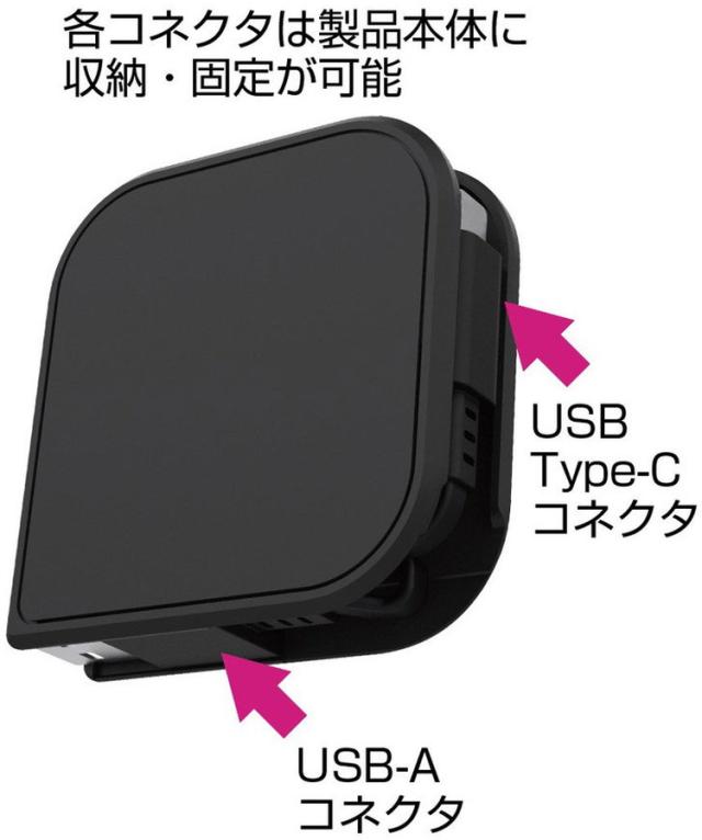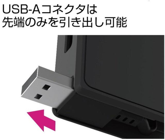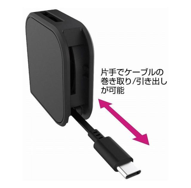 充電/データ通信が可能なリールケーブル 片手で簡単に引き出しができる片引きリール採用 USB-A部分は本体にすっきり収納可能