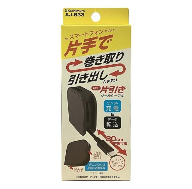 カシムラ USB充電&同期ケーブル 片引きリール 80cm A-C BK AJ-633
