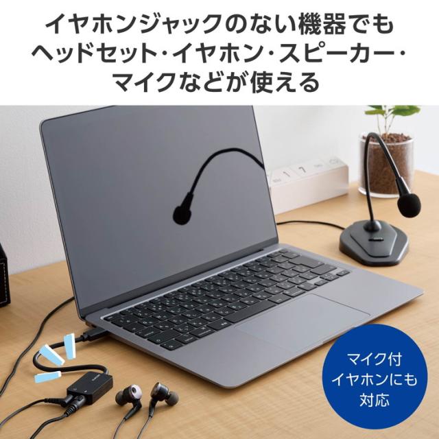 ■イヤホンジャックのないノートパソコンやタブレット、ゲーム機でも、ヘッドセット・イヤホン・スピーカー・マイクなどを使えます。