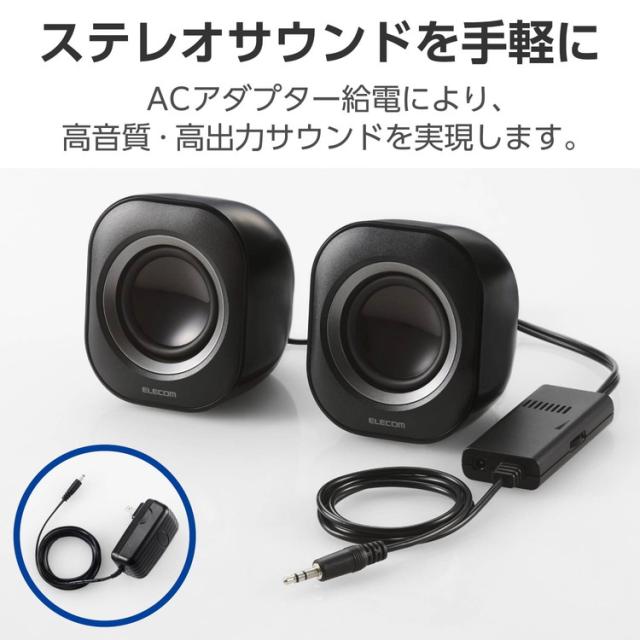 ELECOM PC スピーカー 有線 音声φ3.5mm 電源ACアダプター 小型 ステレオ 最大出力6W(3W+3W) アンプ内蔵 ボリュームコントローラー付 アクティブスピーカー ブラック MS-P08A2BK エレコム(代引不可)【送料無料】