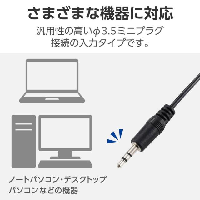 ■汎用性の高いφ3.5ミニプラグ接続の入力タイプなので、パソコンだけでなくさまざまな機器に接続可能です。