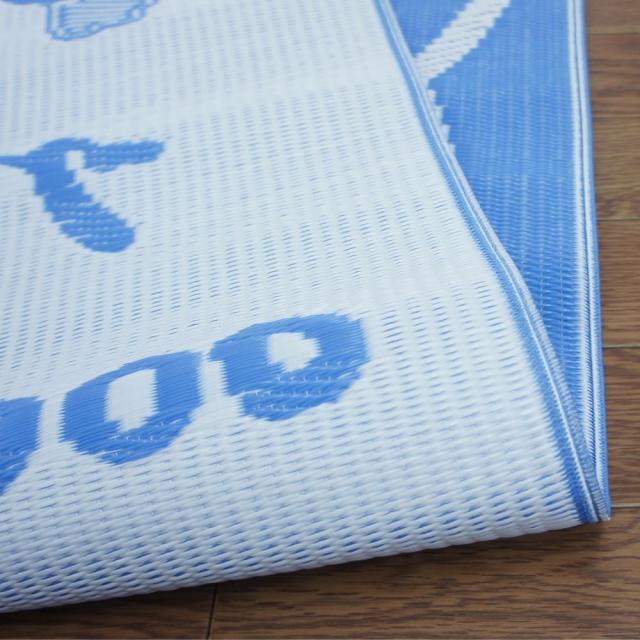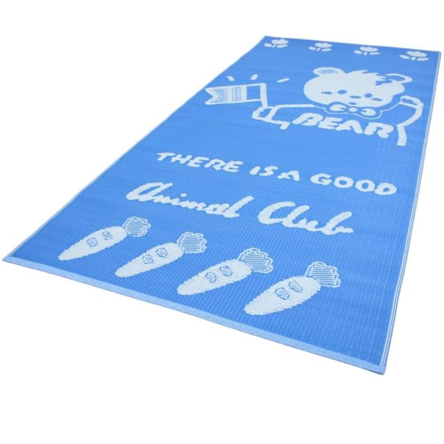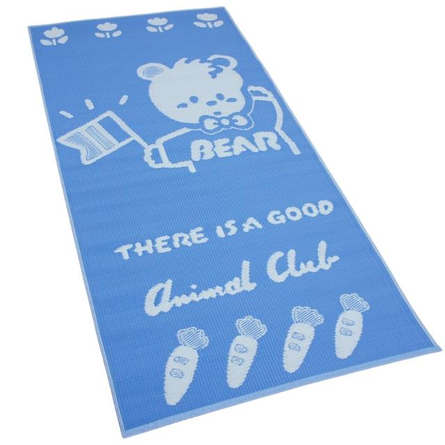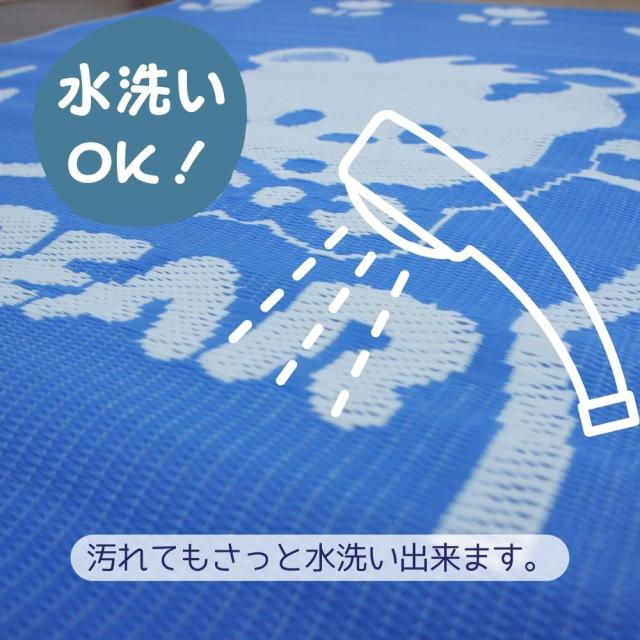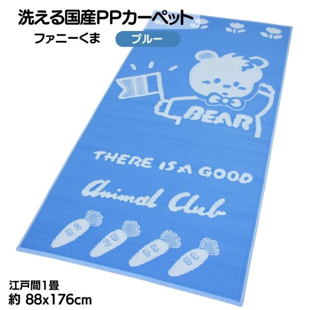 洗える国産い草風PP1畳ラグマット ファニーくま ブルー色 江戸間1畳 88x176cm 撥水・防汚カーペット 水遊び 海水浴 運動会 花見
