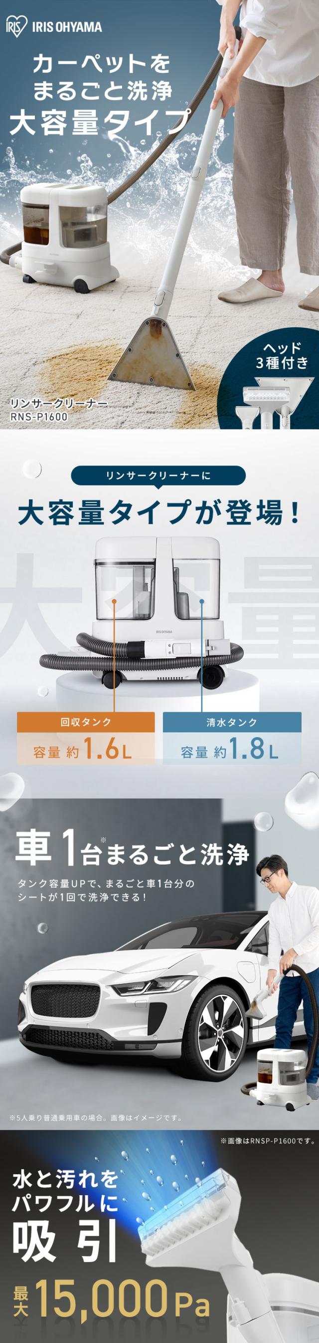 \3,000円OFFクーポン!~3/24 9:59/リンサークリーナー 車 カーペットクリーナー リンサー カーペット ノズル 絨毯 クリーナー 吸引力 布 洗浄機 家庭用 大容量 掃除機 大掃除 アイリスオーヤマ RNS-P1600 送料無料 安心延長保証対象