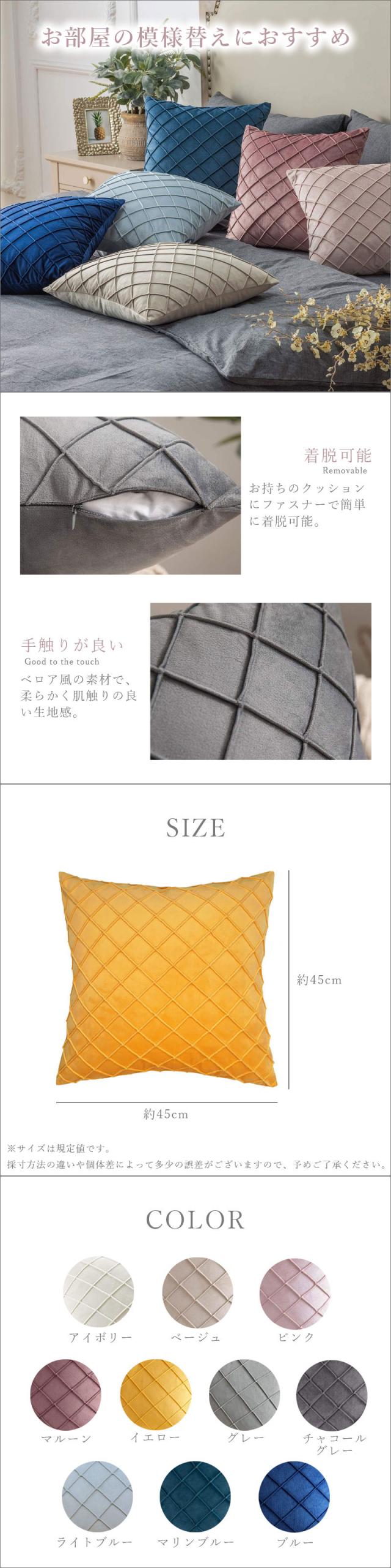 クッションカバー 45×45cm オシャレ かわいい 模様替え 新生活 クッション カバー 洗える ベロア 風 北欧 ナチュラル 一人暮らし リビング ソファ ベッド プレゼント ギフト やわらか おしゃれ カフェ モダン シンプル シック インテリア