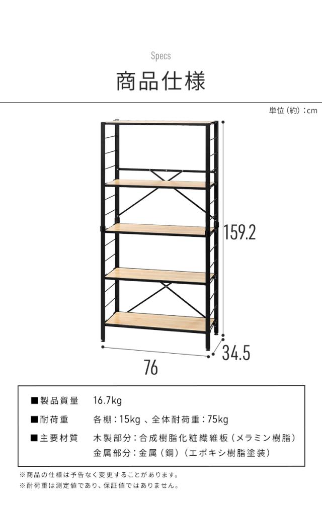 (検索用:スチールラック 5段 幅約76cm 奥行約34.5cm 高さ約159cm 組立簡単 連結 可動棚 おしゃれ シンプル キッチン 家電 リビング オフィス ランドリー 子供部屋 オープンラック ディスプレイラック スチール棚 シェルフ 収納 4967576734790 4967576734806 4967576790116)