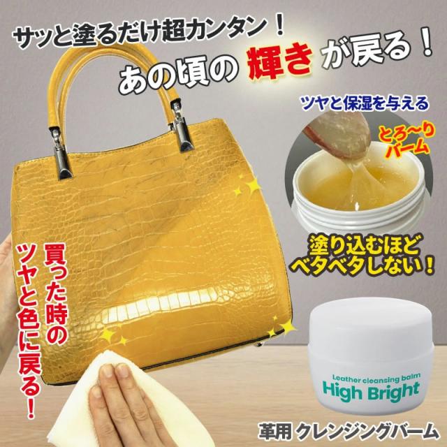 輝きが戻る 革用クレンジングバーム ハイブライト (定形外郵便送料無料) 革製品 皮革製品 つや出し 汚れを落とし 保護 艶出し トリートメント バッグ 靴 パンプス トランク 鞄 革製家具 ワセリン ラノリン ミンクオイル スクワラン