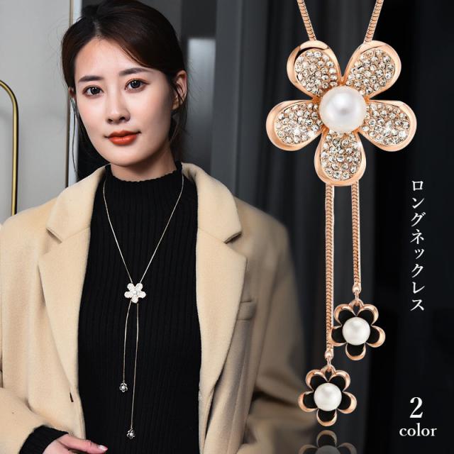 ネックレス レディース ロング ペンダントネックレス ローズゴールド シルバー ダイヤモンド 真珠 シンプル アクセサリー 長め オシャレ プレゼント ファッション クリスマス
