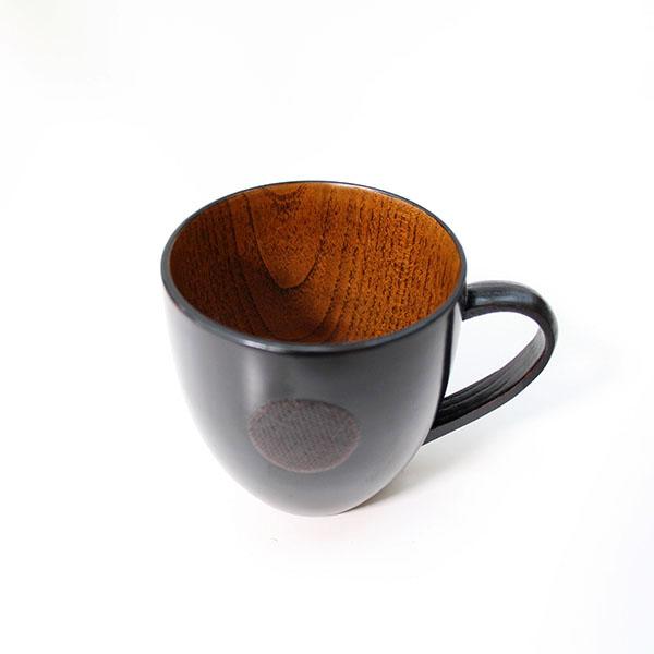 木製 マグカップ コップ カップ 漆塗り まどか 曙 黒 300ml 天然木 持ち手 取っ手 スープカップ 湯呑み ウッドカップ 軽い 軽量 おしゃれ ギフト プレゼント お祝い 御祝 男性 女性 父の日 母の日 敬老の日