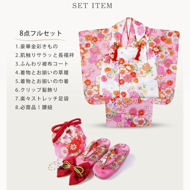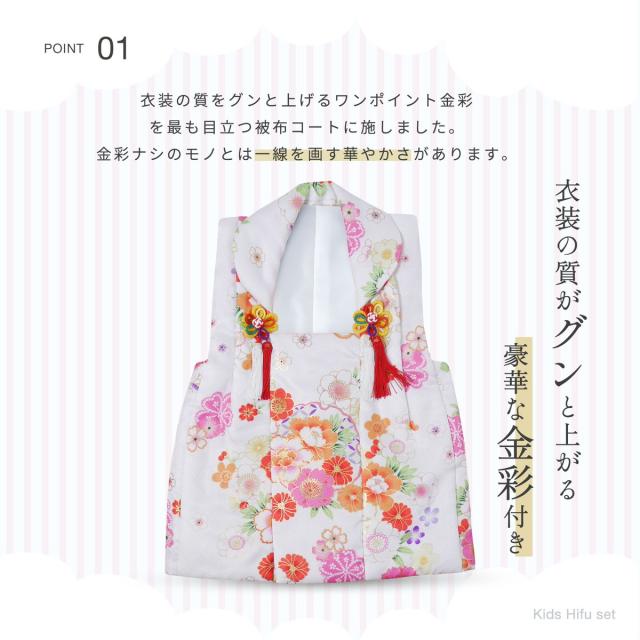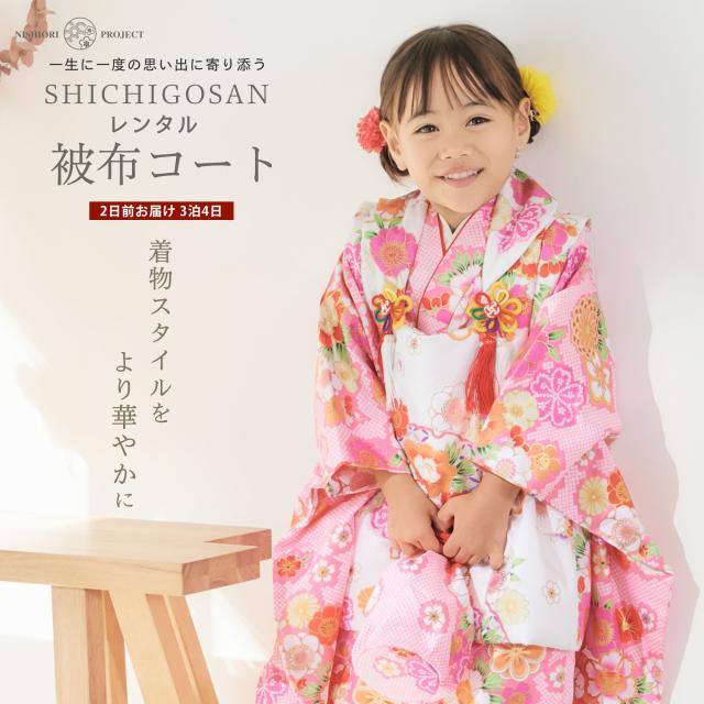 七五三 レンタル 女の子 3歳 被布コート 着物 フルセット 753着物 着物レンタル 貸衣装 七五三 三歳 和装 ピンク 白 古典 金彩 No.317