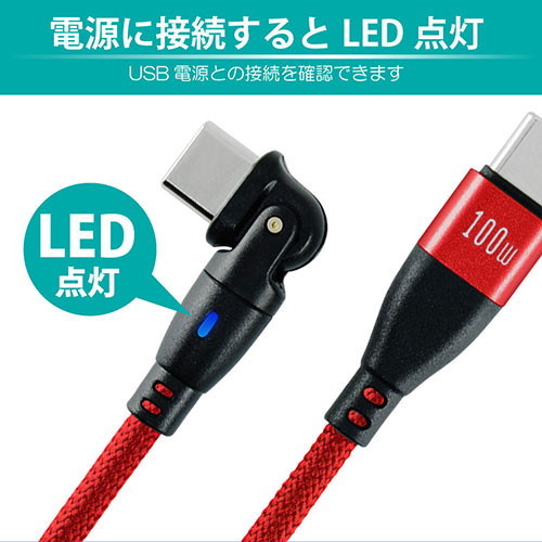 日本トラストテクノロジー 180°回転コネクタPD100Wケーブル 1m レッド 180RPD-10M-RD(代引不可)【メール便配送】【送料無料】