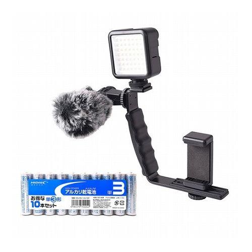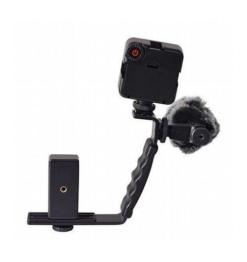 VLOGスタートのためのマイク・LEDライト・ホルダー・L型ブラケットマウントの4点セット。片手でラクラク、動きながらの動画撮影に。周りの雑音に惑わされず、マイクが狙った音を集音。配信動画に欠かせないライト。照明効果で再生回数UP!