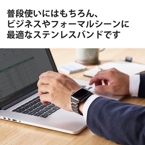 ■光沢による表面仕上の違いをデザインしたモダンなApple Watch Series 7 [45mm]、Apple Watch SE、Series 6、5、4 [44mm]、Apple Watch Series 3、2、1 [42mm]用プレミアムステンレスバンドです。