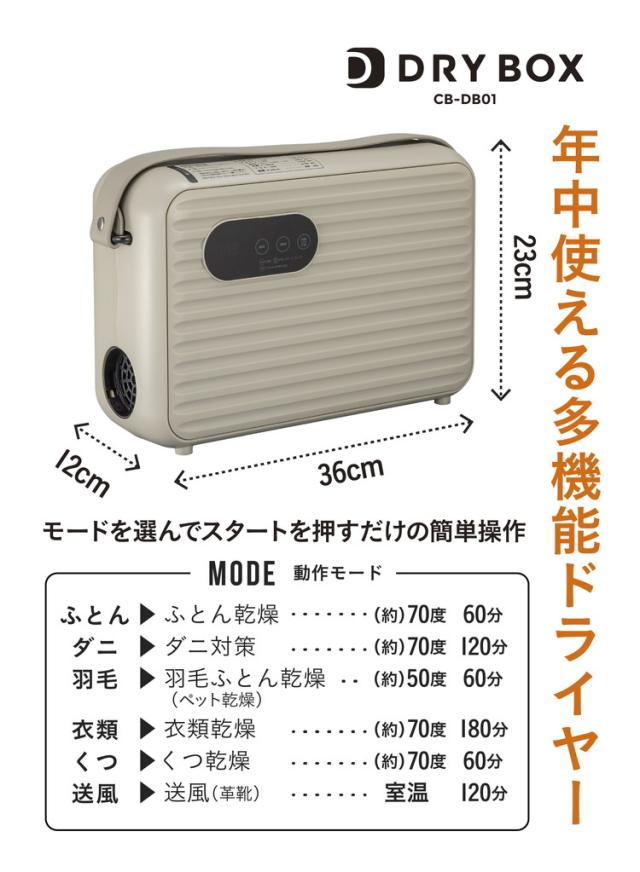 布団乾燥機 衣類乾燥 乾燥機 ドライヤー タッチパネル 多機能 部屋干し 立体ノズル 花粉対策 梅雨対策 温風機能 おしゃれ コンパクト DRYBOX CB-DB01 CBジャパン シービージャパン【送料無料】