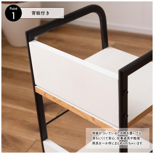 デスクワゴン ブラック ホワイト W32.5×D34×H60 デスクワゴン ワゴン サイドワゴン シンプル ブラック 黒 収納 キャスター キャスター付き 2段 おしゃれ 背板付き 背板 高さ60cm デスク下 デスク下ワゴン 仕事用 スチール 木製 木 キッチン インダストリアル ランドセルラ