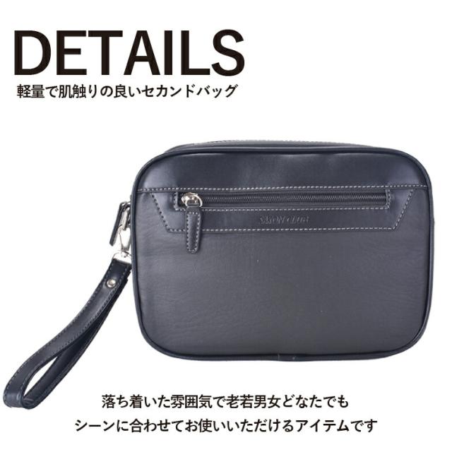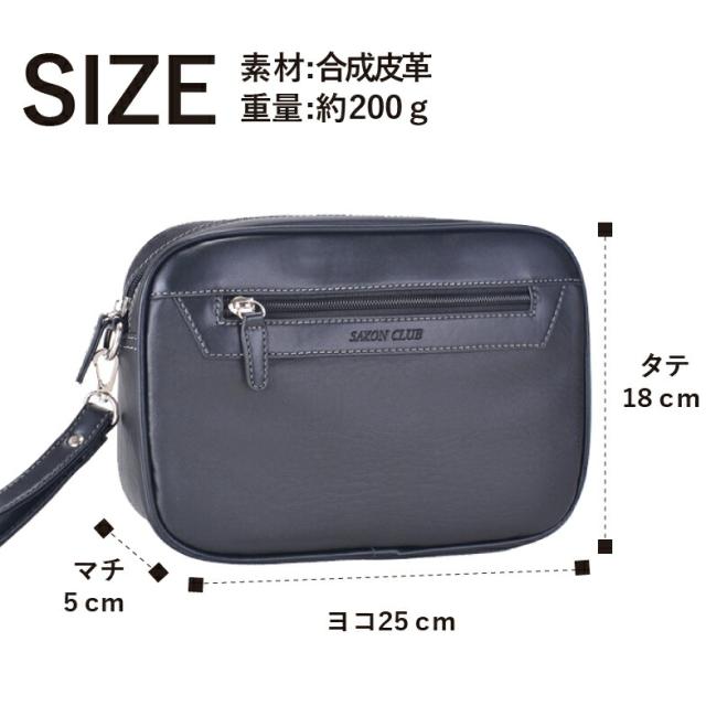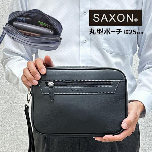 セカンドバッグ メンズ 5231 SAXON サクソン 合皮 セカンドバッグ 小さめ 25cm A5サイズ 軽量 丸型 ポーチ ストラップ付き コンパクト クラッチバッグ 旅行 高級感 結婚式 冠婚葬祭 おしゃれ かっこいい 渋い シンプル 男性 メンズ 紳士 父の日 敬老の日 黒 ブラック
