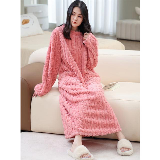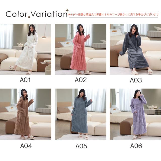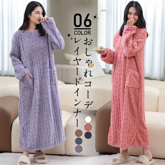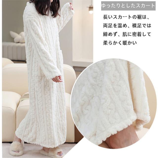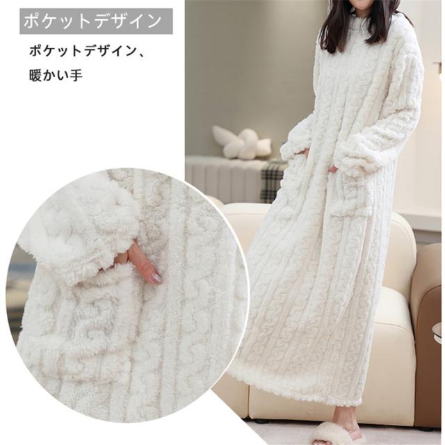 パジャマ レディース ルームウェア ワンピース 秋 冬 もこもこ 部屋着 長袖 リラックス 厚手 寝間着 あったか 可愛い ふわふ