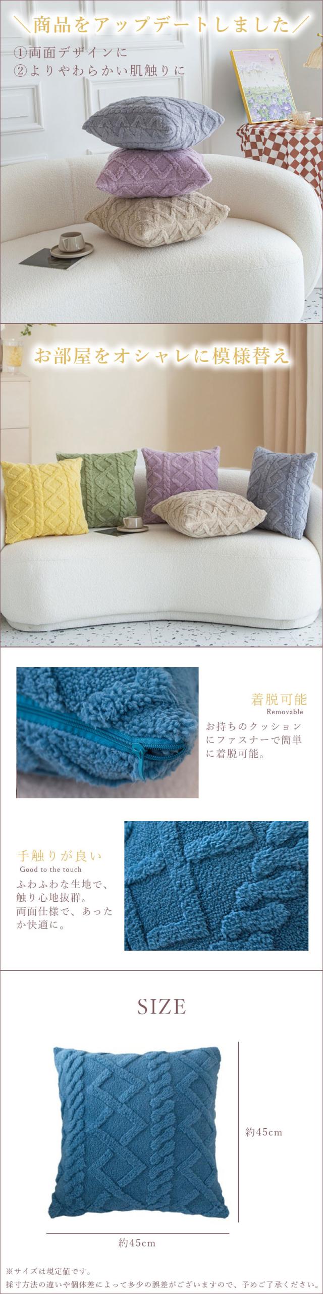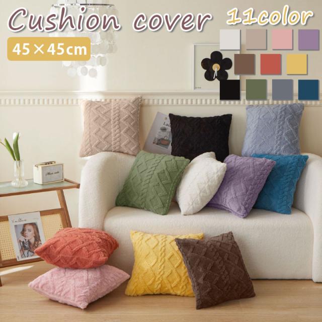 クッションカバー 45×45cm オシャレ かわいい 模様替え 新生活 クッション カバー 洗える ベロア 風 北欧 ナチュラル 一人暮らし リビング ソファ ベッド プレゼント ギフト やわらか おしゃれ カフェ モダン シンプル ニット インテリア
