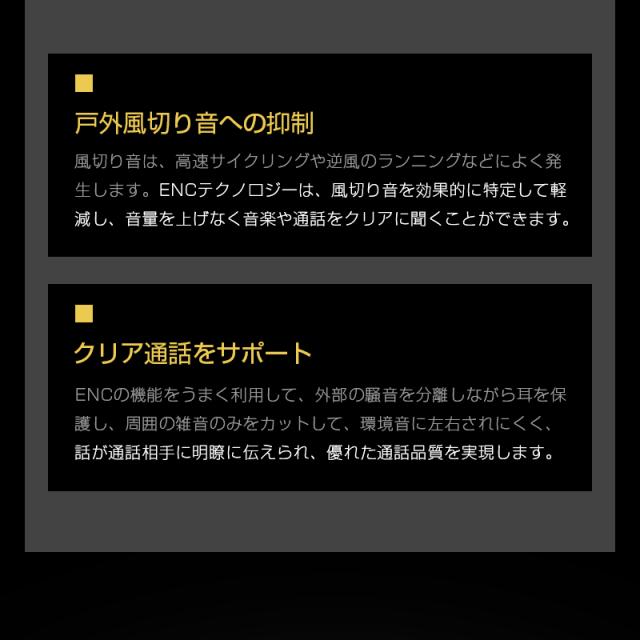耳をふさがないので音楽を聴きながらでも周囲の環境音(車の音や信号の音、緊急車両のサイレンなど)をしっかり聞き取れます。