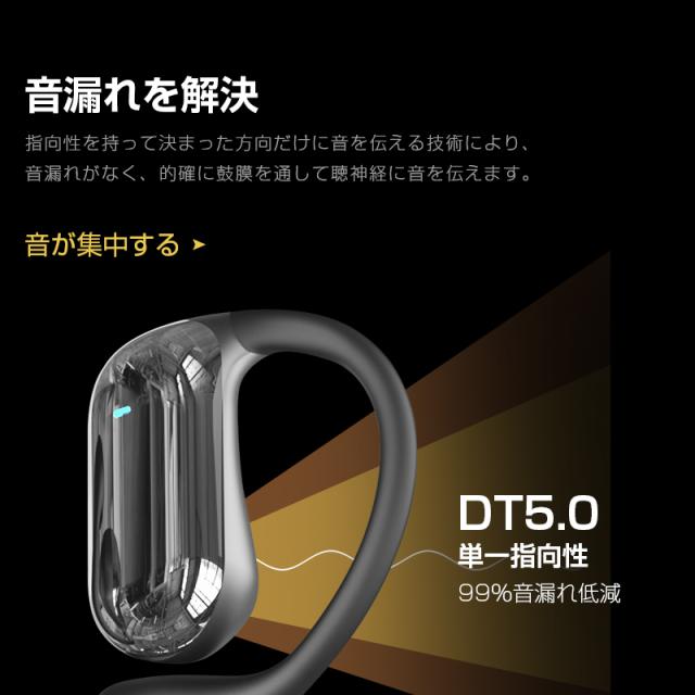 指向性を持って決まった方向だけに音を伝える技術により、耳元のスピーカーから的確に鼓膜を通して聴神経に音を伝えます。これが耳を塞がないオープンタイプなのに音漏れしにくい空気伝導イヤホンのメカニズムです。