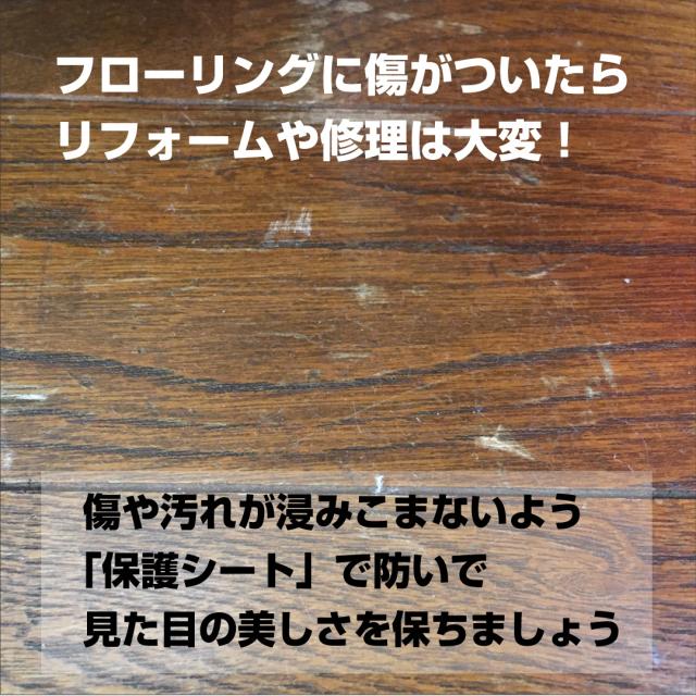薄いので、床に貼っても段差が気になりません。 ■フローリングの上から直接貼れる保護シート