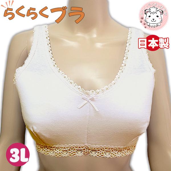 らくらくブラ ハーフトップ 綿100% 日本製 3L | ブラジャー ナイトブラ ノンワイヤーブラ レディース ゆったり 婦人 女性 下着 肌着 インナー
