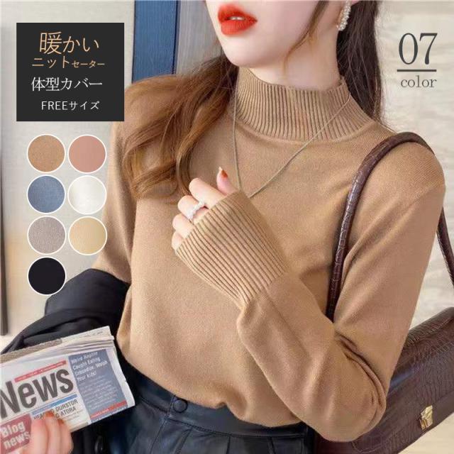 ニットセーター 長袖 レディース リブ ニット セーター 長袖 秋 秋冬 クルーネック ハイネック ハーフネック プルオーバー 秋
