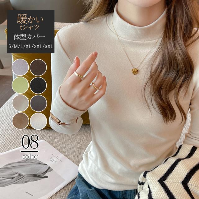 tシャツ 長袖 レディース トップス タートルネック 細身 重ね着風 ゆったり おしゃれ カジュアル 無地 体型カバー 着痩せ 通
