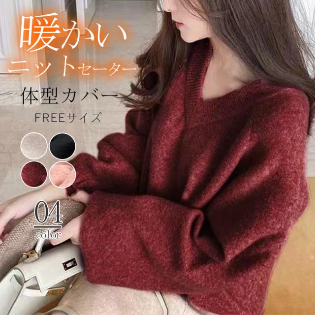 ニットセーター 長袖 レディース Vネック カジュアル ゆったり ストレッチ 秋冬 暖かい トップス セーター ニット 伸縮性 暖