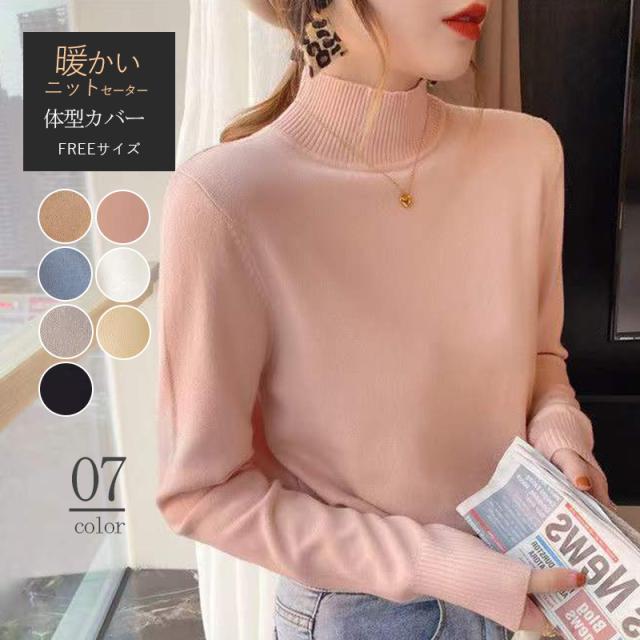 ニットセーター 長袖 レディース リブ ニット セーター 長袖 秋 秋冬 クルーネック ハイネック ハーフネック プルオーバー 秋