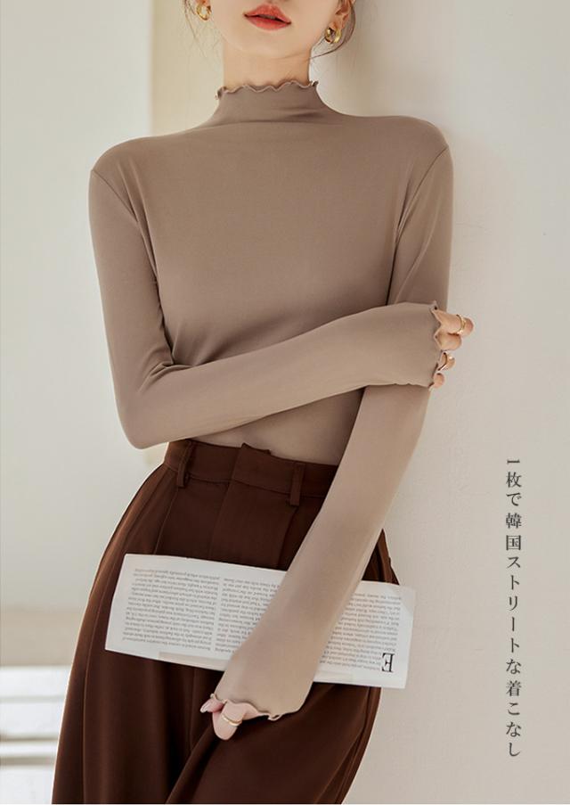 トレンドのメローデザインでベーシックすぎないシンプルトップス 緩やかなフリルが愛らしさと上品さを演出するメロウ襟&袖 1枚着でもインナーでも使えるよう、程よいフィット感に拘りました ワイドデニムなどボリューム感のあるボトムと好相性な、ほどよいコンパクトなサイズが魅力です。 冬はもちろん、春、秋シーズンは1枚でも大活躍する1枚。 ボトルネックなので首元すっきり見え 1枚で韓国ストリートな着こなし Tシャツやスウェットに重ねてちらりと見せたり、 重ね着インナーとしてもおすすめです。 ボトムスを選ばず幅広く使える ※モニター環境により多少色合いが異なりますので、予めご了承くださいませ。 |