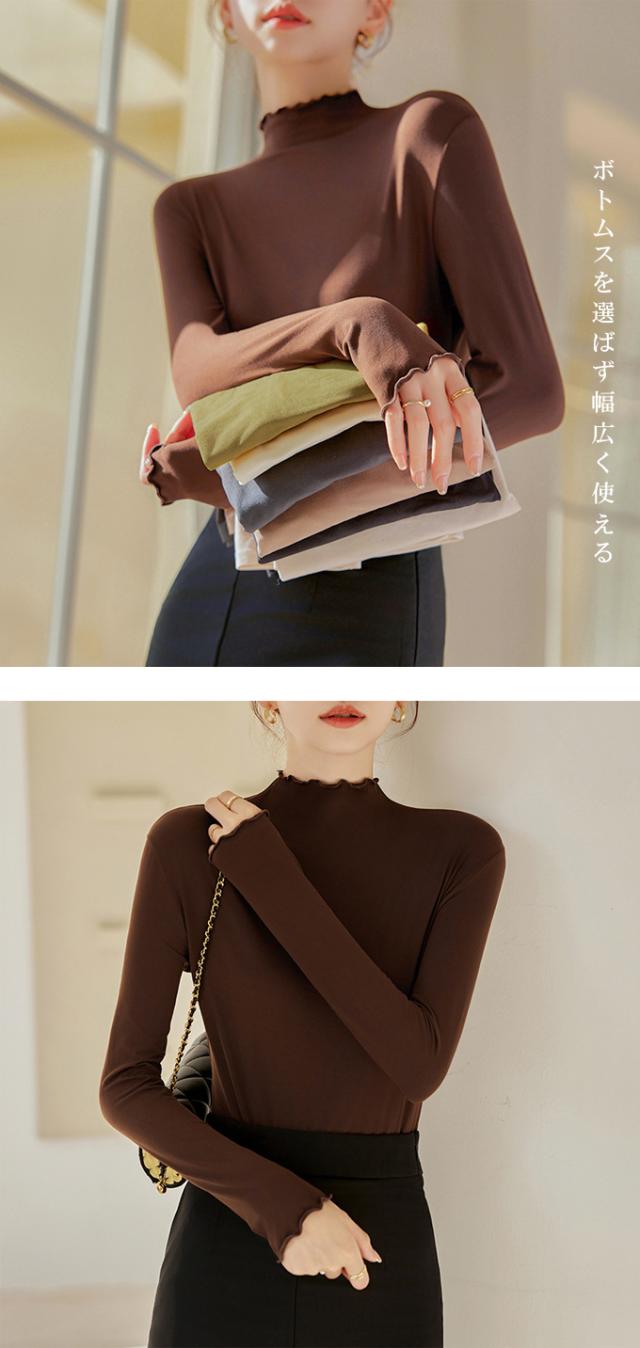 メローデザインカットソー ハイネック メロー インナー レイヤード カットソー 重ね着 フリル