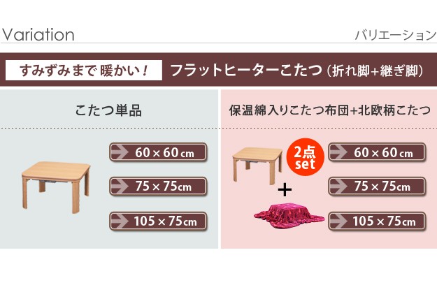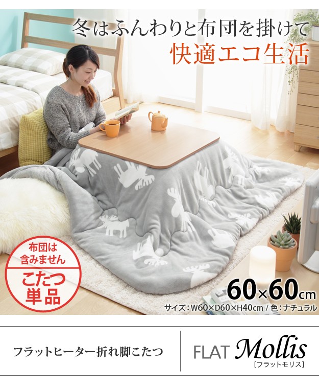 完成品 フラットヒーター 折れ脚 こたつ フラットモリス 60x60cm コンパクト 収納 幅75 正方形 こたつテーブル 和室 単品 北欧(代引不可)【送料無料】