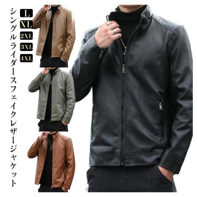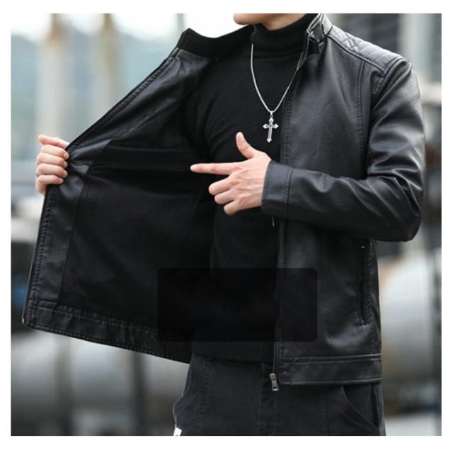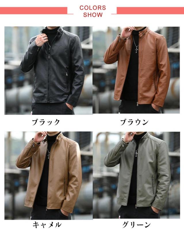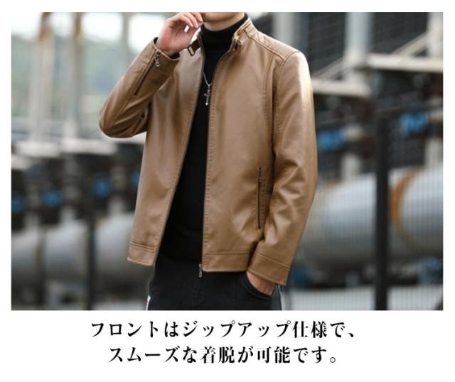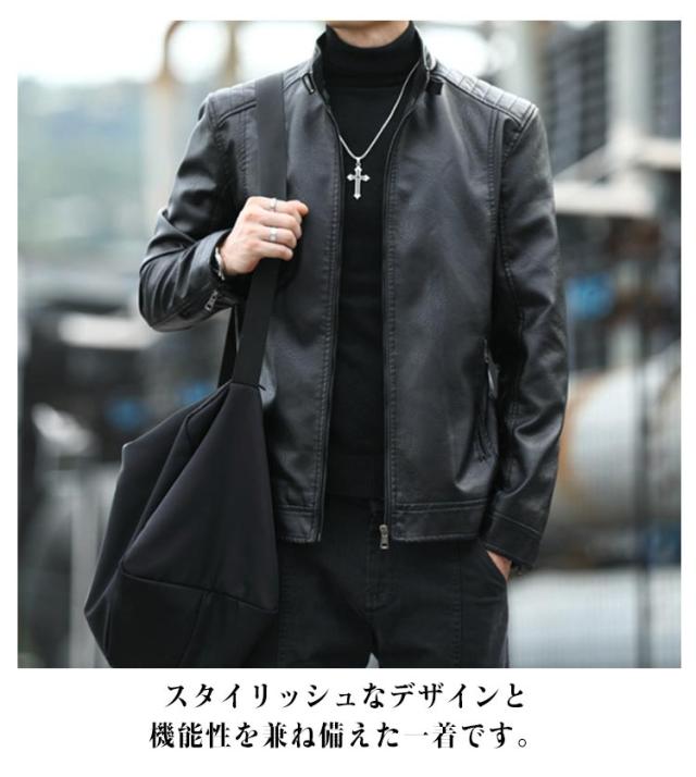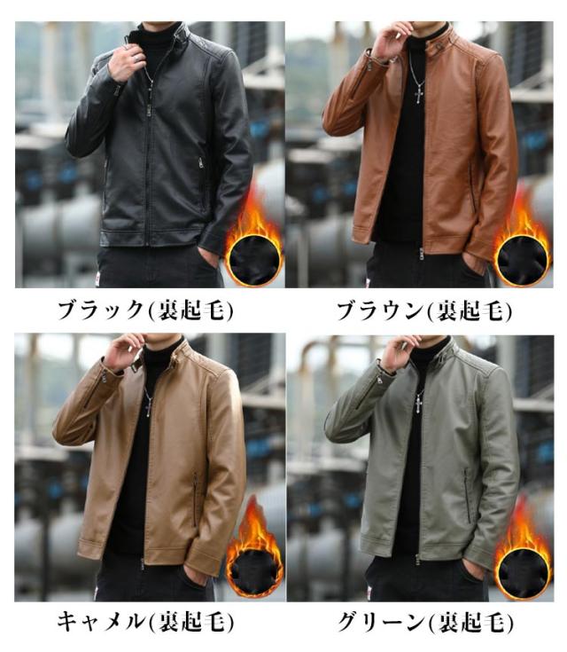 革ジャン メンズ 立ち襟 ライダースジャケット レザージャケット 裏起毛タイプあり ブルゾン ジップアップ レザージャケット アウター スリム 細身 タイト バイク 秋