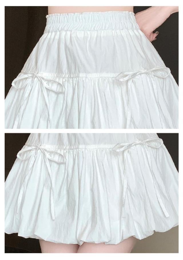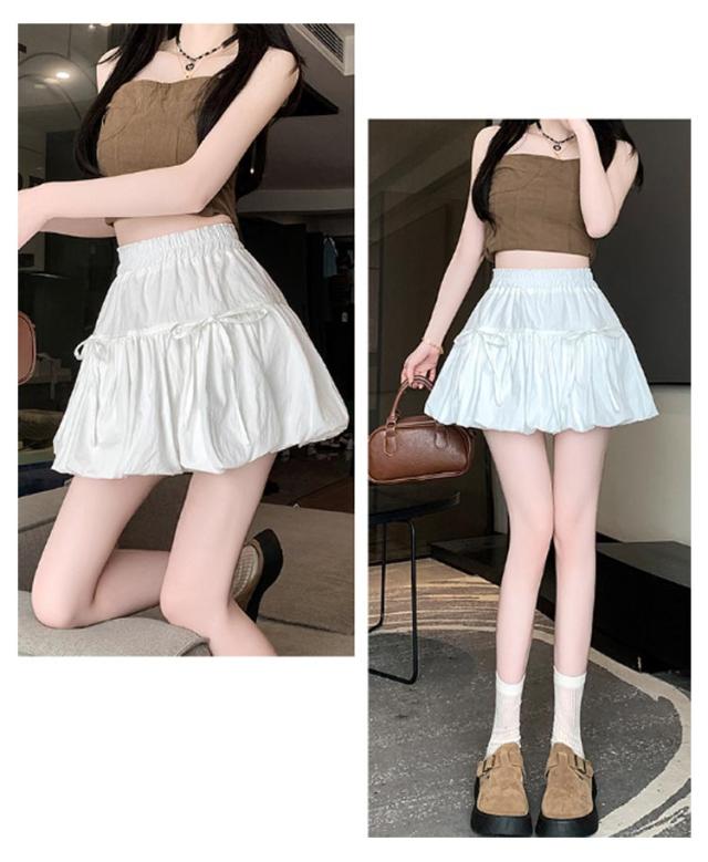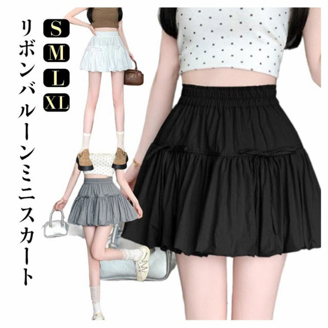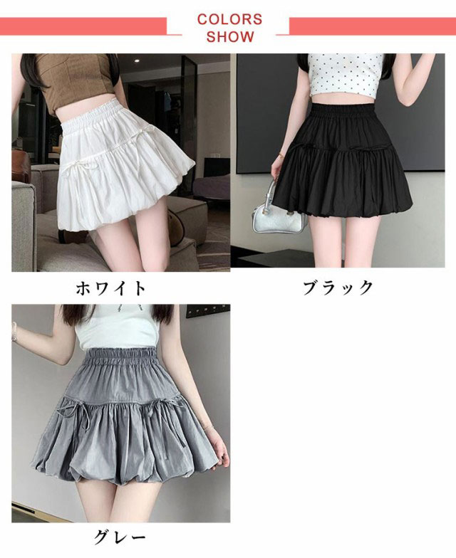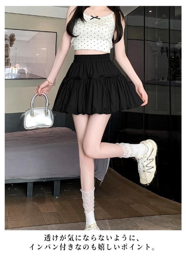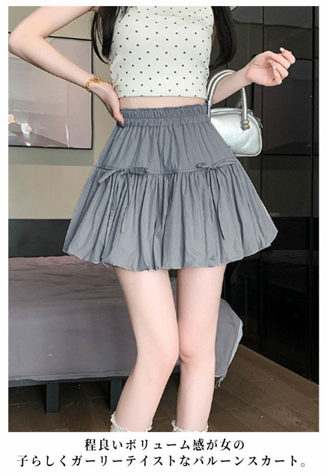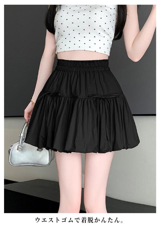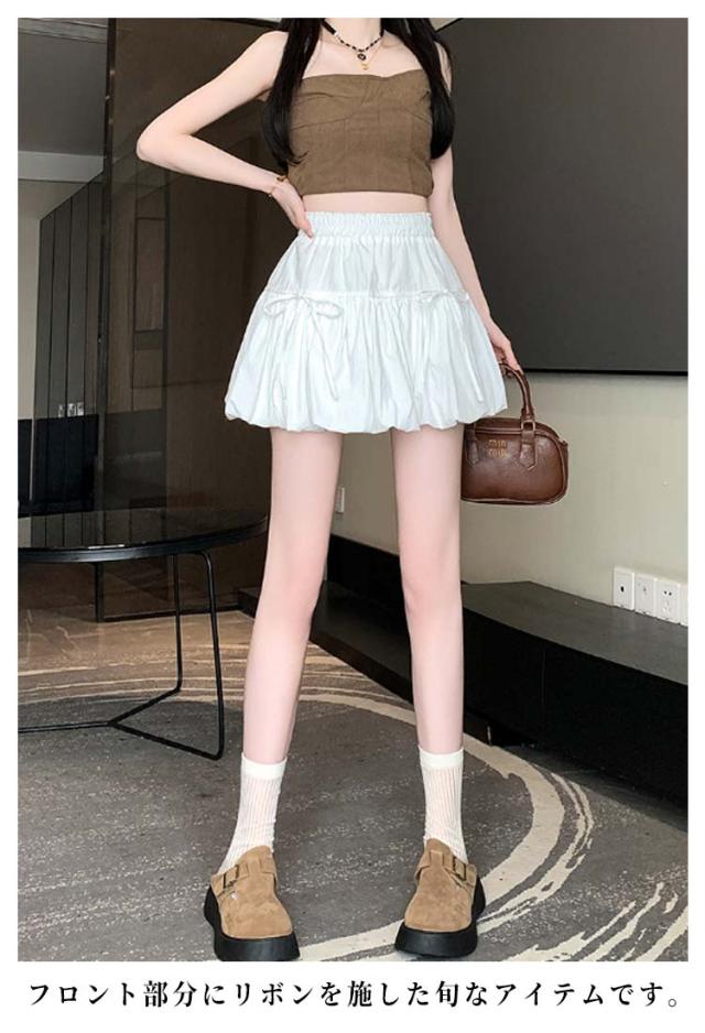 ミニスカート ウエストゴム ガールズ ジュニア インナーパンツ付き 韓国トレンドファッション バルーンスカート 女の子 学生 学校 通学 かわいい リボンバルーンスカート ガールズボトム ミニスカ ガーリー