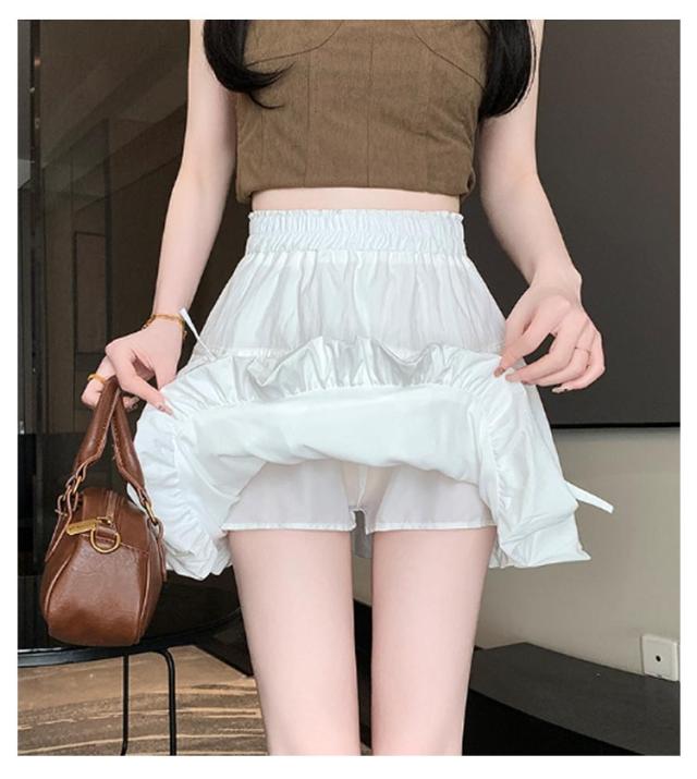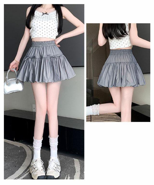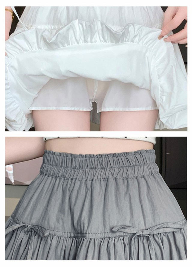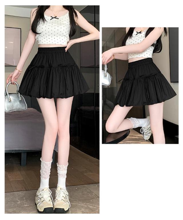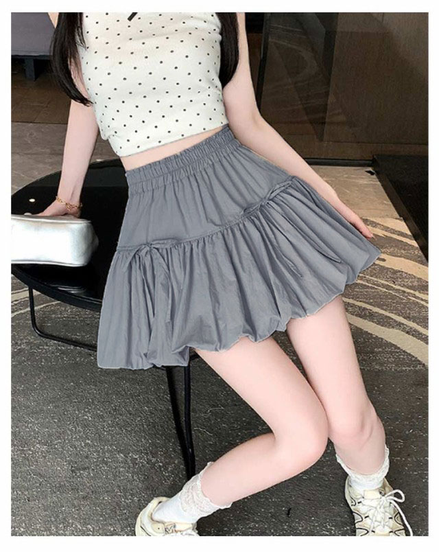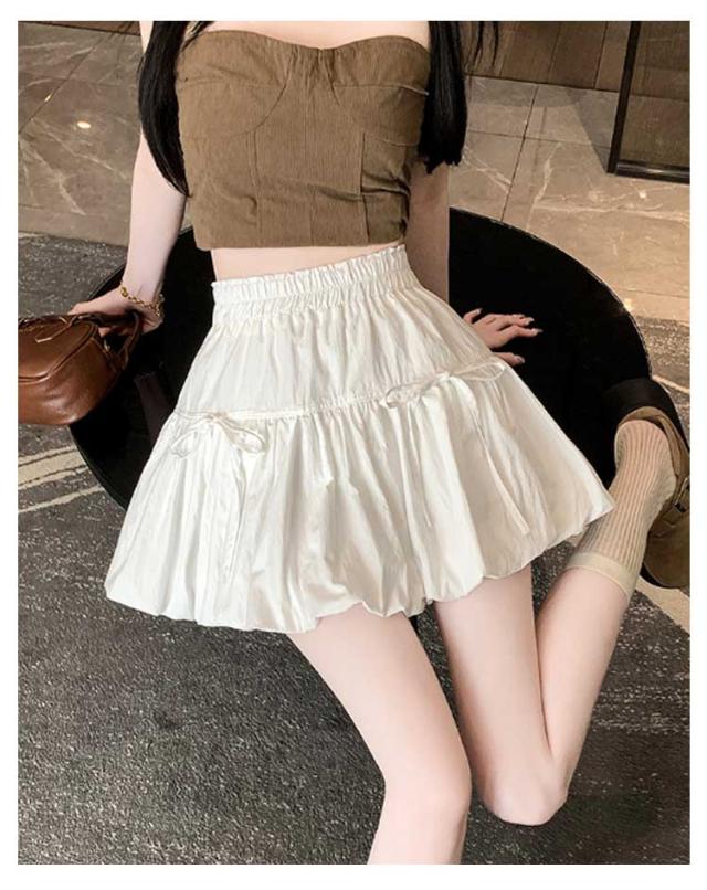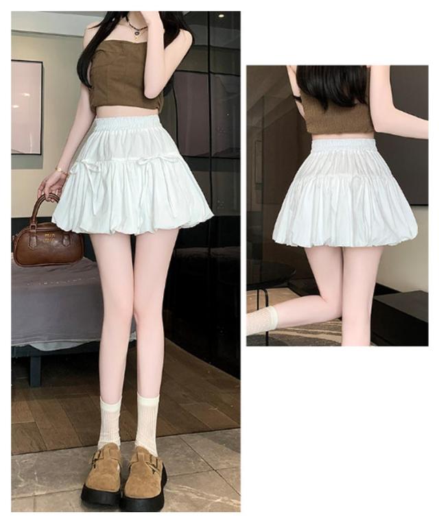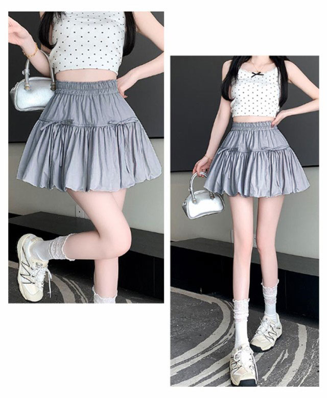 ミニスカート ウエストゴム ガールズ ジュニア インナーパンツ付き 韓国トレンドファッション バルーンスカート 女の子 学生 学校 通学 かわいい リボンバルーンスカート ガールズボトム ミニスカ ガーリー