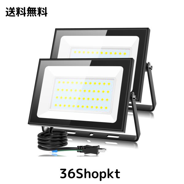 KIWEN【超薄型・2個セット】 LED投光器 80W 10000LM 昼光色 ledライト 屋外 IP66 防水 豪雨対応 作業灯 led 100V対応 アース付きプラグ P