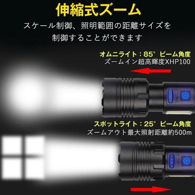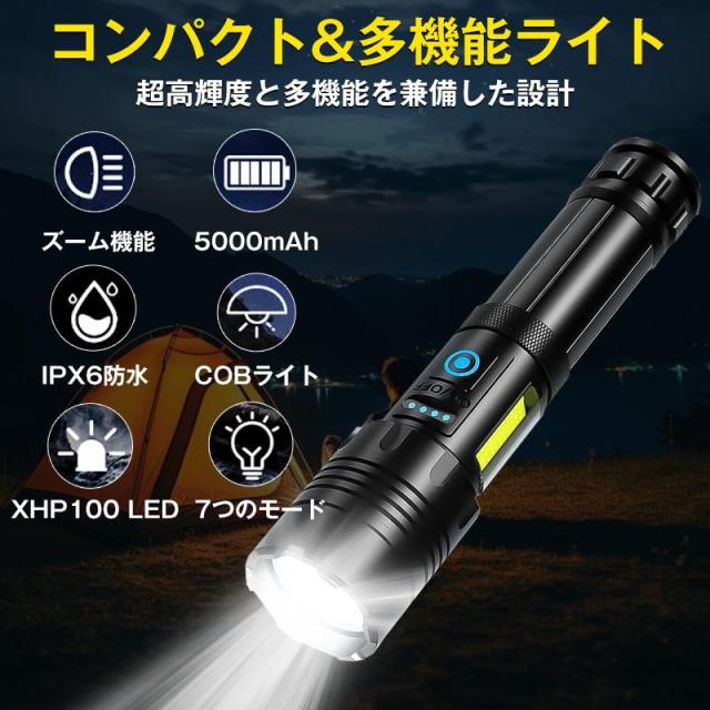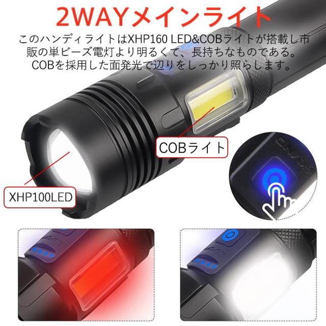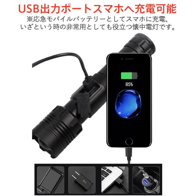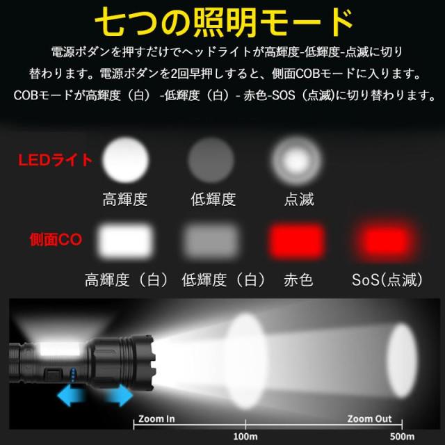 懐中電灯 高輝度 USB充電式 ledライト 防水 白&赤色灯 7モード ズーム調整 小型 明るい 耐衝撃 防災 自転車 登山 作業用 停電 地震