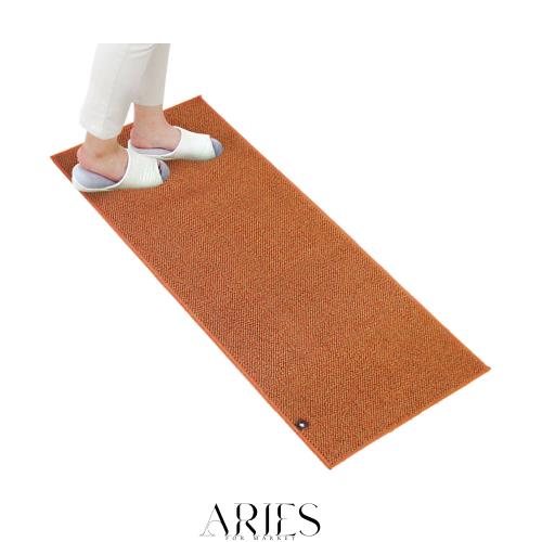 それぞれ異なる3色の糸をミックスし、単色にはない上質な色合いのマットに仕上げました。 木の床に馴染む、飽きのこないナチュラルな雰囲気です。 軽くてやわらかいので、小さくたためて洗濯が簡単です。乾きが早く、繰り返し洗濯してもへたりにくいのが特長です。 キッチンマットの厚みは約6mm。薄手なので扉の開閉や、最下段の引き出しの開閉や下段の収納の引き出しを邪魔しません。 システムキッチンの最下部の引き出しと床面との隙間がわずか9mmというキッチンもありますが、厚さ6mmのキッチンマットならマットが隙間に挟まったり、ひっかかってマットがズレるという事なくスムーズに使って頂けます。 薄手ですが、ループ形状のキッチンマットなので、弾力があり、クッション性に優れています。 繰り返し洗濯をしても、毛羽立ちが少なく、すべり止め効果も長持ちします。 マットがずれにくいのでキッチンワークが快適です。 カラーも糸密度も上質なつくりです。 長く使っていただけるキッチンマットです。
