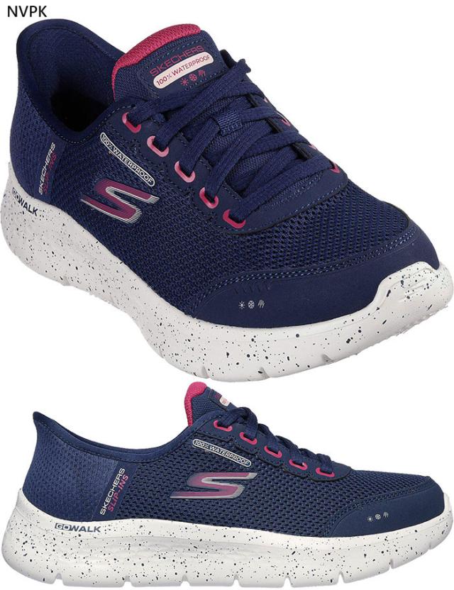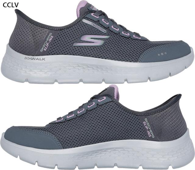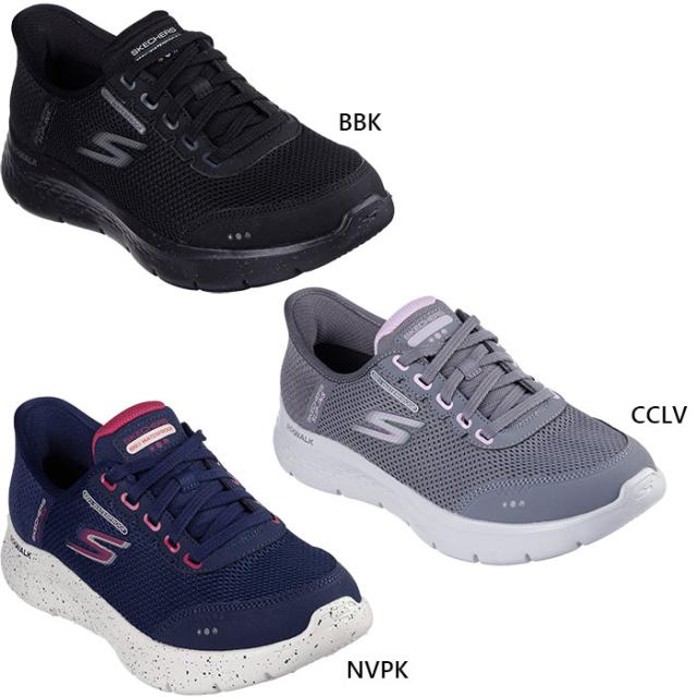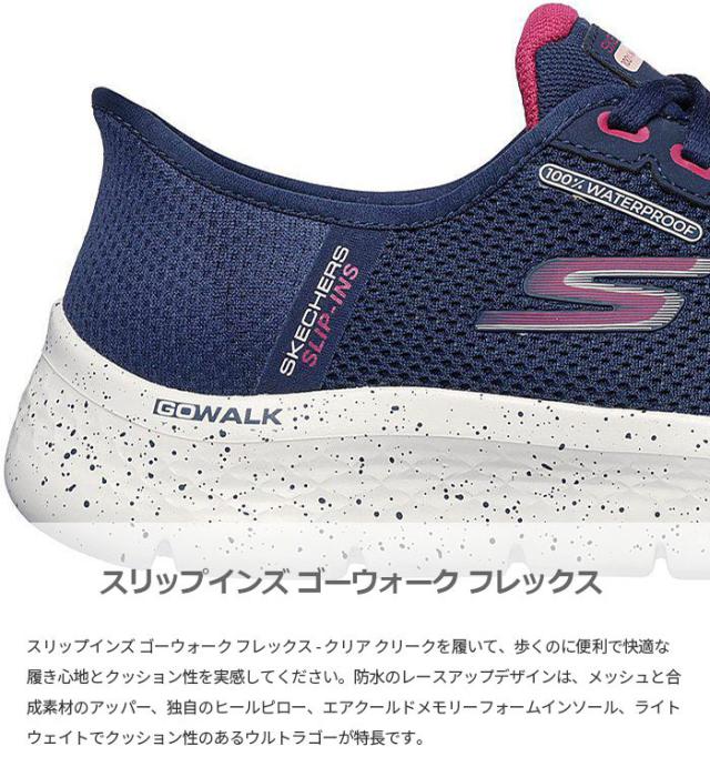 かがまず履ける 4E ワイド 幅広 スケッチャーズ レディース スリップインズ ゴーウォーク フレックス クリア クリーク スニーカー シューズ 紐靴 防水 ブラック 黒 グレー ネイビー 灰色 送料無料 SKECHERS 124846W