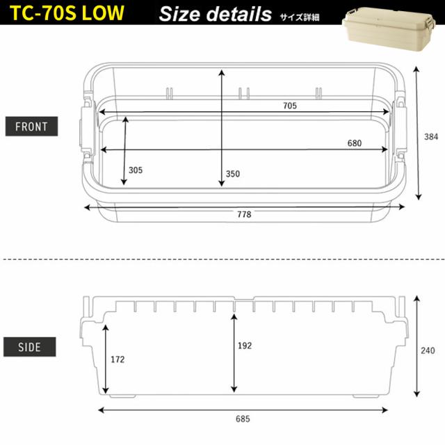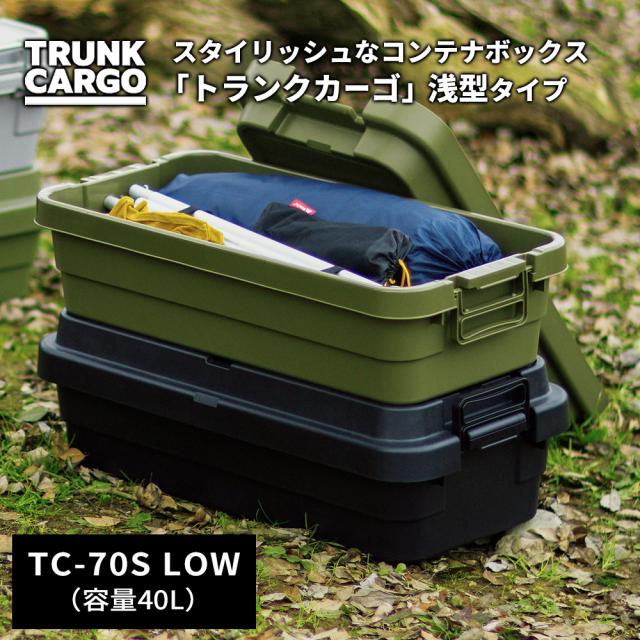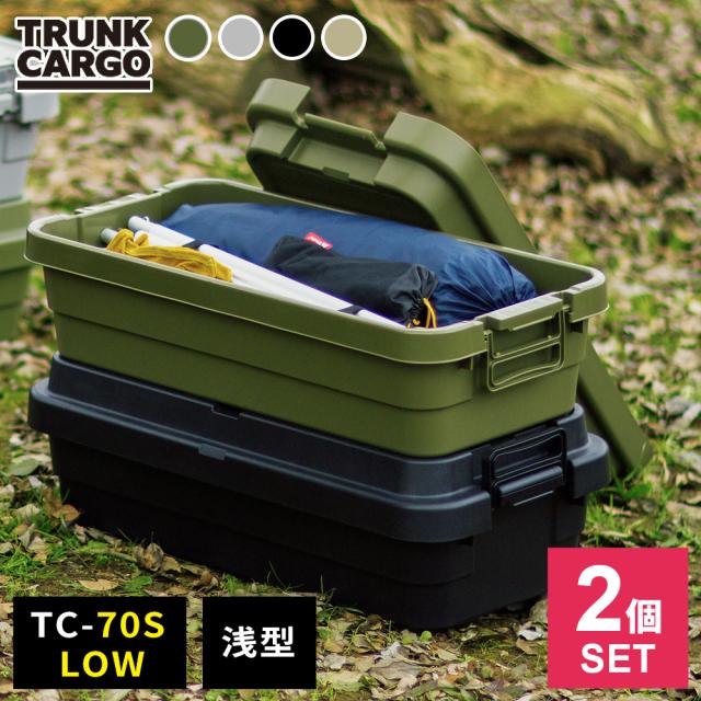 アウトドア 収納ボックス 浅型 トランクカーゴ TC-70S LOW ×2個セット グリーン/グレー/ブラック/ベージュ | コンテナボックス 浅い ハーフ 蓋つき 収納ケース 収納BOX 日本製 おしゃれ 座れる アウトドア キャンプ 収納