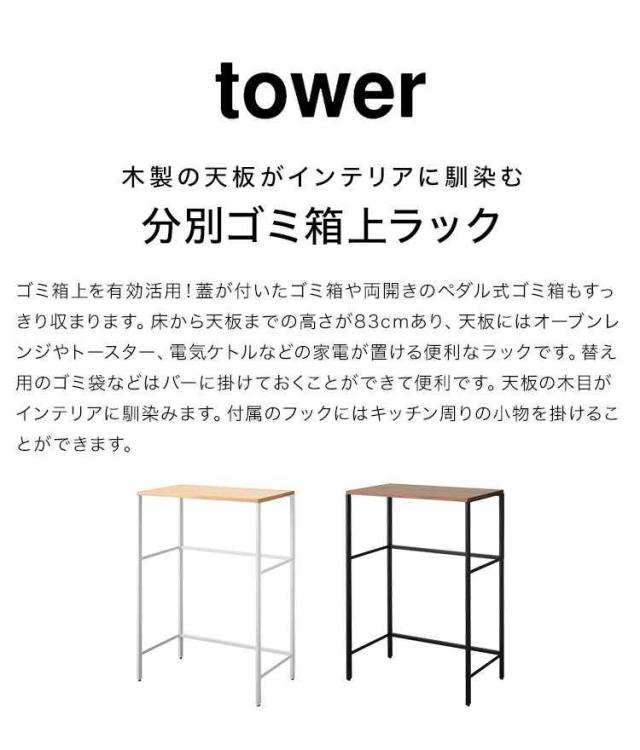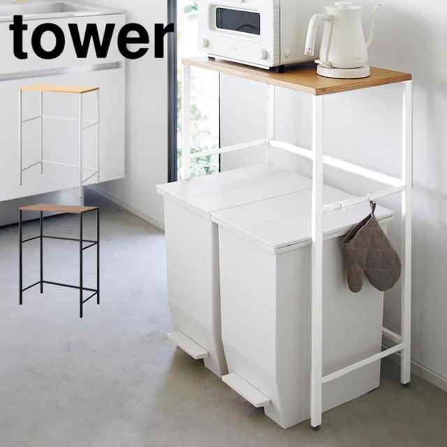 分別ゴミ箱上ラック 山崎実業タワー tower ゴミ箱 上 ラック 幅60 cm キッチンラック 収納 棚 レンジ台 家電 炊飯器 収納ラック 台所収納 奥行き 40 ダストボックス 電子レンジラック トースター おしゃれ 北欧 スタイリッシュ シンプル ホワイト ブラック 1666 1667 新生活