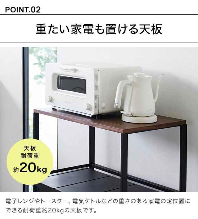 床から天板までの高さが83cmあり、天板にはオーブンレンジやトースター、電気ケトルなどの家電が置ける便利なラックです。